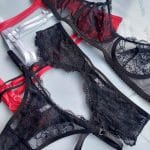 Conjunto de encaje, corpiño con aro, sin relleno y less regulable.